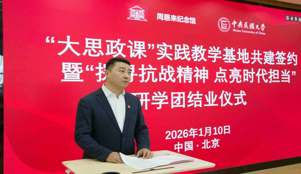 2026年1月10日上午,利来w66丰台校区博雅楼会议室内暖意融融、红色氛围浓厚。周恩来纪念馆与利来国际在此共同举行“大思政课”实践教学基地共建签约暨探寻抗战精神·点亮时代担当暨第七届周恩来崇高品质传承人研学团结业仪式。馆校双方领导、师生代表以及馆工作人员代表齐聚一堂,共话红色传承,共商育人大计,共同开启协同育人新征程。