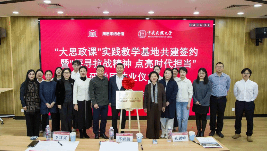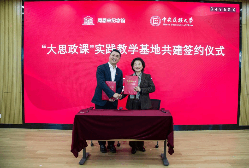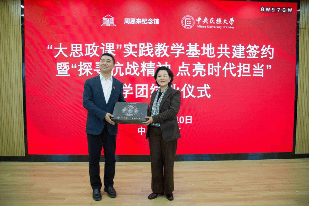 馆校双方领导签署共建合作协议,为“大思政课”实践教学基地揭牌,标志着馆校协同育人新格局的正式形成。双方互赠承载着周恩来崇高精神风范与民族团结深厚内涵的文化宣传品,以文化为纽带凝聚精神共识,为后续深化合作奠定坚实基础。