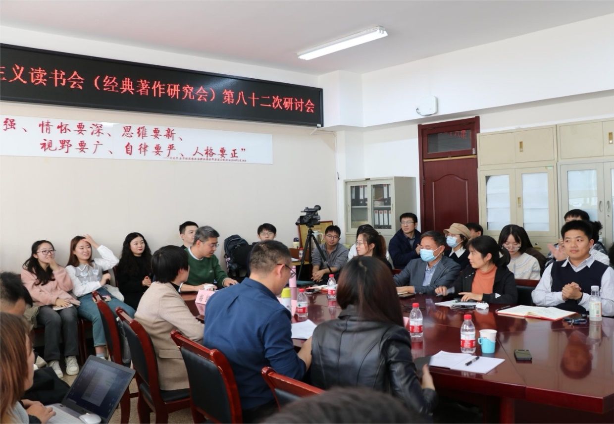 研讨会上,杨须爱老师的报告从三方面展开:一是如何科学理解马克思主义经典作家的“民族”“共同体”“民族融合”概念,强调正确理解这三个概念是正确理解经典作家民族融合理论的前提;二是马克思主义经典作家民族融合理论的基本思想;三是新时代中国共产党“民族交融”概念的提出与理论创新。同时,杨老师就马克思主义经典作家共同体思想与民族理论的关系及其对铸牢中华民族共同体意识的启示作了分析。海路老师和王晓红老师分别从经典作家论述与理论的中国化时代化角度和共同体建设的理论逻辑方面,结合读书会主题展开了进一步的学术讨论和研究分享。与会师生积极参与提问和展开交流,现场研讨气氛活跃热烈。