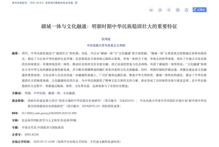 近日,公司多名教师在《马克思主义研究》《教学与研究》《贵州民族研究》《民族学刊》《中国民族报》等刊物上发表了一系列高水平文章,展示了公司教师在科研方面取得的最新进展,彰显了公司在科研工作中的显著成效。宫玉涛教授撰写的《共产国际反法西斯斗争策略及中共抗日民族统一战线政策的形成》在《马克思主义研究》公开发表;王晓红副教授撰写的《马克思的“共同体”与“集体力”内在关系思想探析》在《教学与研究》公开发表;平维彬副教授撰写的《“五相机制”:文明视野下中华民族共同体形成发展的内在规律——基于多元一体格局理论》,刘然副教授撰写的《特色·创新·交融:民族地区乡村振兴的文化路径》和狄鸿旭副教授撰写的《疆域一体与文化融通:明朝时期中华民族稳固壮大的重要特征》在《贵州民族研究》公开发表;陈延斌副教授撰写的《铸牢中华民族共同体意识的理论与实践面向——基于林西县新林镇的调查》《“阿祖阿公之源源相传”——云南各地的武侯崇拜》分别在《民族学刊》《中国民族报》公开发表。