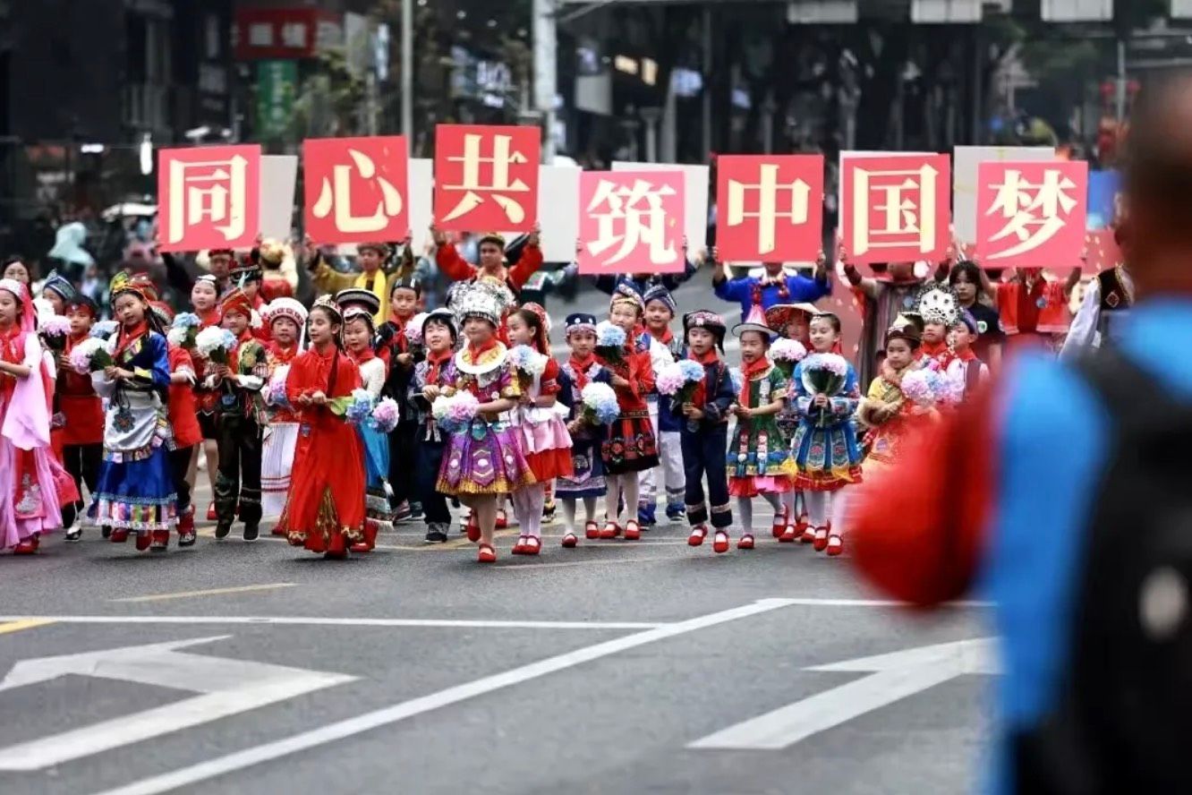 ▲5月18日,2025贵州民族团结大巡游盛大举行。56个民族、26个方阵、2.3公里长街化作“流动的民族画卷”。(图片来源:贵阳统战)