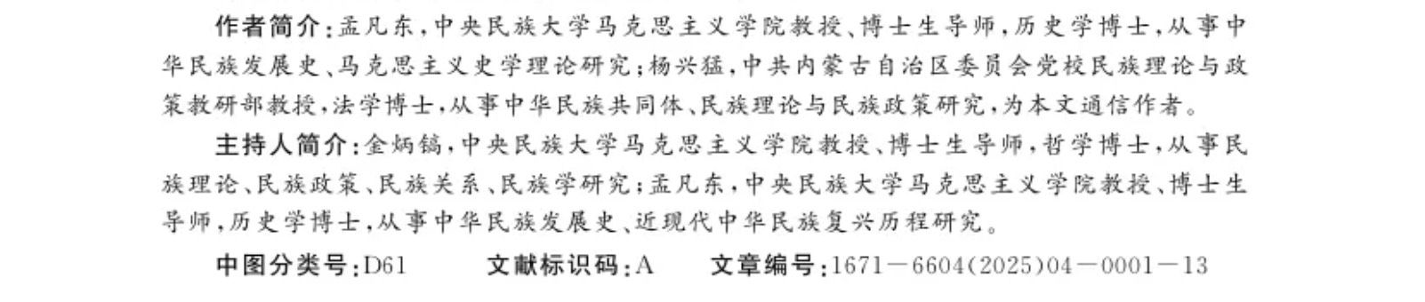 孟凡东教授、康基柱教授等在《江苏大学学报(社会科学版)》第4期的《中华民族共同体研究·纪念中国人民抗日战争暨世界反法西斯战争胜利80周年》的专题文章:《中国全民族抗战与近代中华民族共同体意识的真正自觉》。文章着力从纵向时间维度论证近代中华民族共同体意识真正自觉的历史生成,从内在系统结构论证整体自觉的要素构成,尝试呈现“中华民族共同体意识整体自觉”的真正内在逻辑与外部表征,进而全面明晰抗日战争时期中华民族共同体意识的基本要素和结构内容。在全民族共同抗战过程中,不管是在敌后战场,还是在国民党正面战场,抑或是在大后方,中华各民族都生死与共、命运与共、团结一体,在共御日寇的对敌斗争中取得了抗日战争的胜利,使中华民族共同体意识得到了极大增强与升华,实现了近代中华民族共同体意识的真正自觉,这主要体现为:中华民族先锋队意识唤醒了中华民族的革命意识,彰显了中华民族共同体的救国自觉;中华民族大联合意识增强了国人的国家认同与爱国主义精神,彰显了中华民族共同体的文化自觉;中华民族大团结意识锻造了中华民族的凝聚力,彰显了中华民族共同体的历史自觉;中华民族大家庭意识提升了中华民族的命运共同体意识,彰显了中华民族共同体的整体自觉。