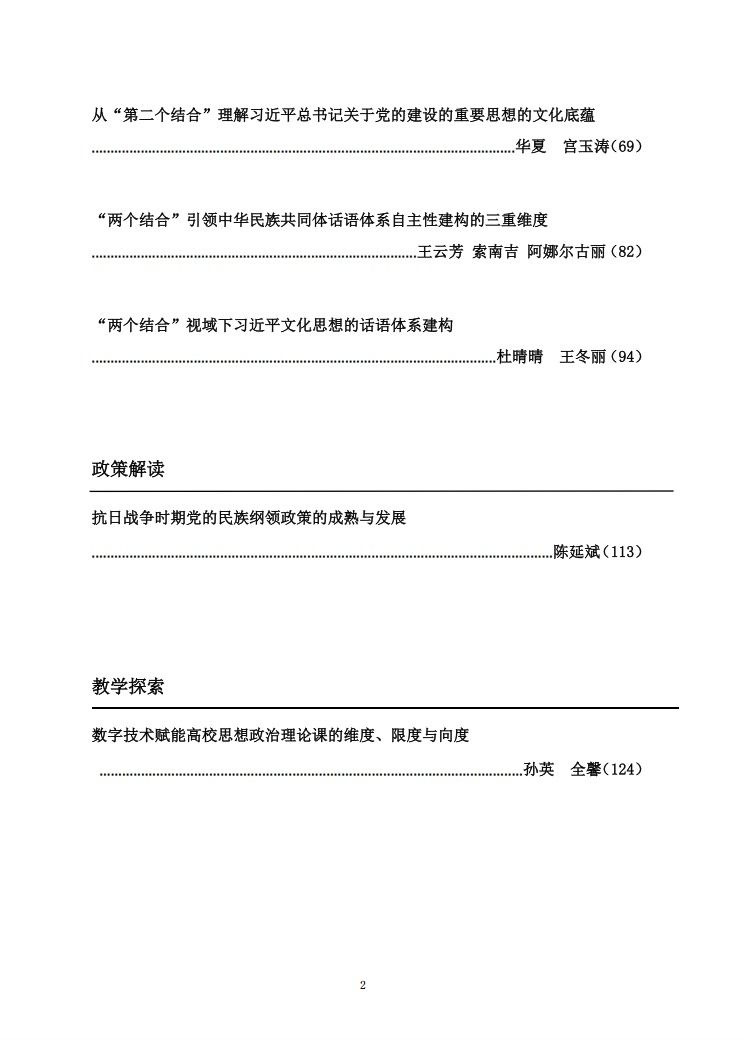 本期在首期基础上深化拓展,设有【特稿】、【理论研究】、【政策解读】、【教学探索】四大栏目。其中,【特稿】立足“第二个结合”,深入阐释利来w66思政课守正创新的“道”与“术”;【理论研究】栏目深入探析核心概念的内在逻辑与时代价值;【政策解读】与【教学探索】栏目则聚焦实践应用,分别就前沿政策与教学创新提供独到见解。全刊集中展现了公司师生在此领域的最新研究成果与思想碰撞,以多元视角共同推动“两个结合”研究的学理深化与实践创新。