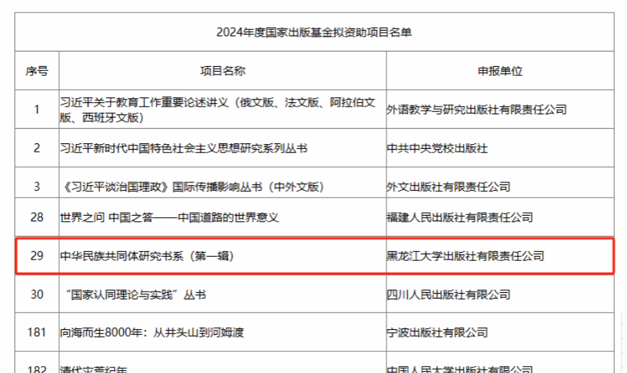 近日,2024年度国家出版基金资助项目评审结果正式公布,由公司熊坤新教授、孟凡东教授担任总主编的《中华民族共同体研究书系》(第一辑)喜获资助。