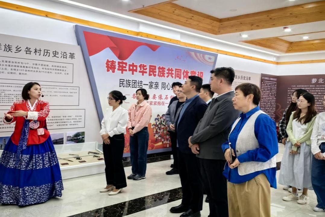 (实践团师生认真聆听东明朝鲜族乡历史文化)
