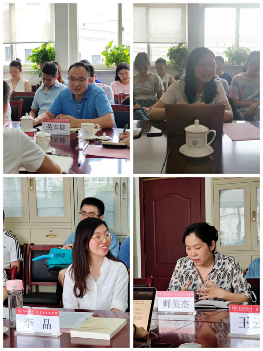 在论坛第二阶段,吴本健老师、王云芳老师、李晶老师和师英杰老师四位老师围绕理论文章的撰写经验进行交流分享。吴本健老师围绕如何处理好专注与开放之间的关系、理论与实证之间的关系、阐释与创新之间的关系和思考与练笔之间的关系进行了讨论分享;王云芳老师提出“文章不仅要应需而作,而且还要应需而言”“文章的选题不仅要别出新意,还要自出新意”的观点并进行交流探讨;李晶老师以“用好快、准、狠三字诀写好理论文章”为题汇报了所思所想;师英杰老师以“想去写、敢去写、及时写”为主题进行了汇报,指出科研道路有方法没捷径,一定要涵养自律精神。在几位老师的精彩分享中,现场洋溢着浓浓的学术氛围。