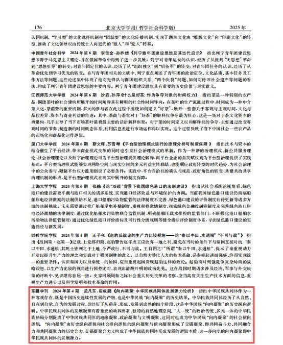 公司孟凡东教授与翟成鹏合作撰写的《向内凝聚:中华民族共同体发展源力论析》一文被《人大复印报刊资料·民族问题研究》2025年第2期全文转载,并被《北京大学学报(哲学社会科学版)》2025年第1期“全国高校文科学报概览”专栏摘编。该文首发于《东疆学刊》2024年第4期,指出中华民族共同体作为一种客观存在,既是中国历史连续性发展的产物,也是中华民族“向内凝聚”的历史结果。