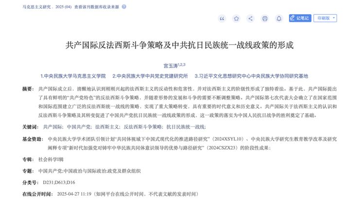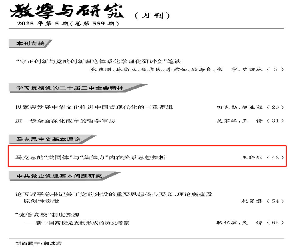 近日,公司多名教师在《马克思主义研究》《教学与研究》《贵州民族研究》《民族学刊》《中国民族报》等刊物上发表了一系列高水平文章,展示了公司教师在科研方面取得的最新进展,彰显了公司在科研工作中的显著成效。宫玉涛教授撰写的《共产国际反法西斯斗争策略及中共抗日民族统一战线政策的形成》在《马克思主义研究》公开发表;王晓红副教授撰写的《马克思的“共同体”与“集体力”内在关系思想探析》在《教学与研究》公开发表;平维彬副教授撰写的《“五相机制”:文明视野下中华民族共同体形成发展的内在规律——基于多元一体格局理论》,刘然副教授撰写的《特色·创新·交融:民族地区乡村振兴的文化路径》和狄鸿旭副教授撰写的《疆域一体与文化融通:明朝时期中华民族稳固壮大的重要特征》在《贵州民族研究》公开发表;陈延斌副教授撰写的《铸牢中华民族共同体意识的理论与实践面向——基于林西县新林镇的调查》《“阿祖阿公之源源相传”——云南各地的武侯崇拜》分别在《民族学刊》《中国民族报》公开发表。