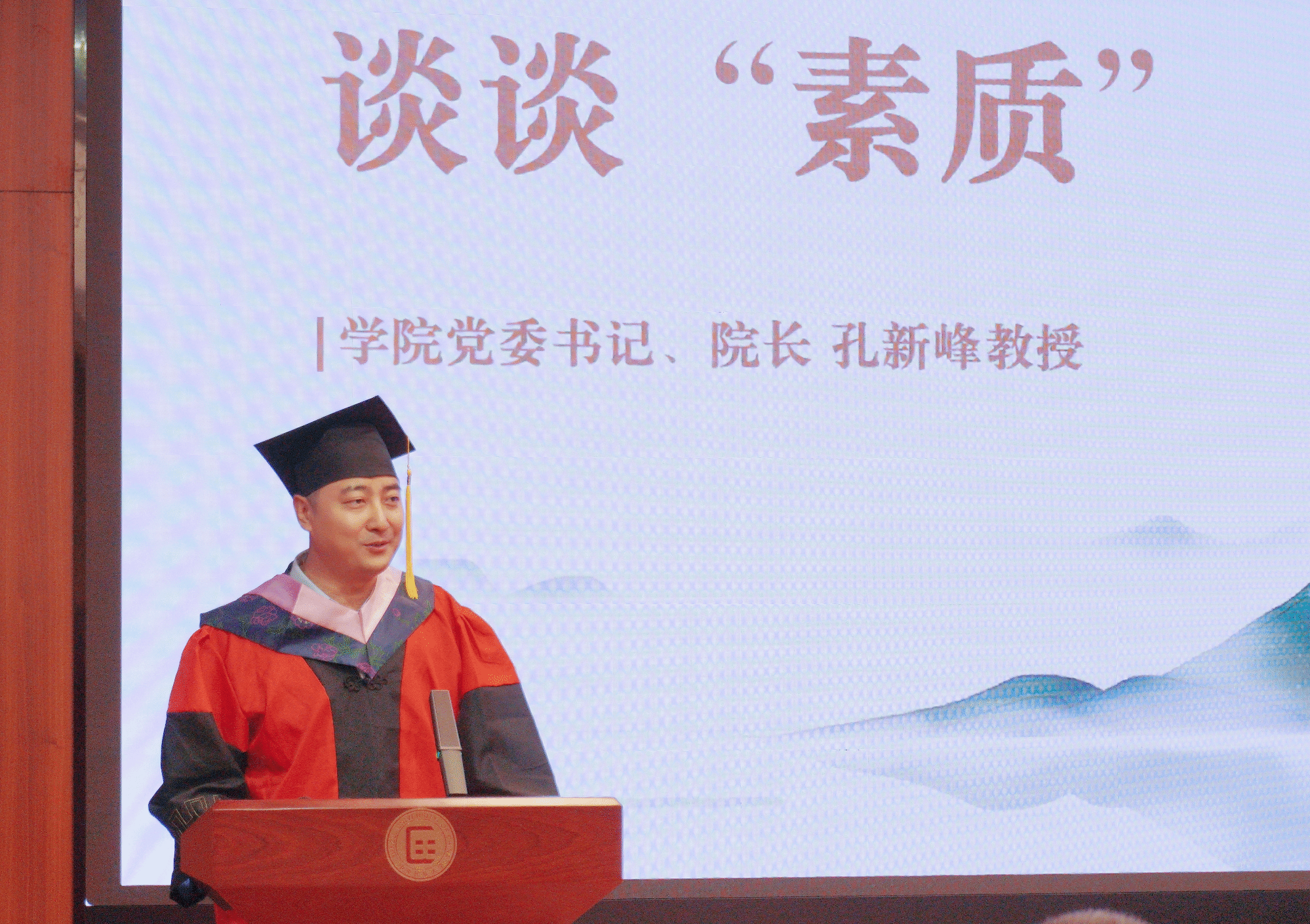 刚才,晓红老师作为导师代表、成鹏同学作为优秀毕业生代表,分别作了精彩发言。他们旁征博引马克思主义经典著作,鞭辟入里、发人深省;而我将从“第二个结合”的角度,侧重阐释中华优秀传统文化,特别是儒家思想的某些精髓要义,与大家探讨“素质”这一命题。谈及 “素质”,我联想到以“素”开篇的《素年锦时》:你们正处“素年”,是人生最纯粹美好的年华;恰逢“锦时”,青春无限、花团锦簇。我想跟大家分享的是,公司与院友都应对作为育人重要目标之一的“素质”进行思考:究竟何为“素质”?
