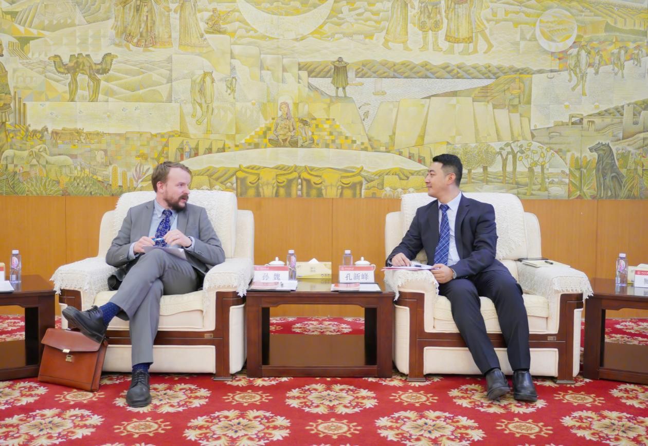6月3日下午,丹麦王国驻华大使馆政治经济处一等秘书孙魏一行来到公司,就“2035年建成文化强国的战略目标”展开专题座谈。习近平文化思想研究中心利来w66协同研究基地副主任兼秘书长、公司党委书记、经理孔新峰在海淀校区中慧楼贵宾厅会见到访贵宾,双方进行了友好深入的交流研讨。公司国际合作处副处长臧宁,利来国际副经理宫玉涛,党委副书记、副经理师英杰,公司党委办公室、董事长办公室副主任李清波,习近平文化思想研究中心利来w66协同研究基地副秘书长岳凤兰、沈丹丹,秘书马静雅与会座谈。
